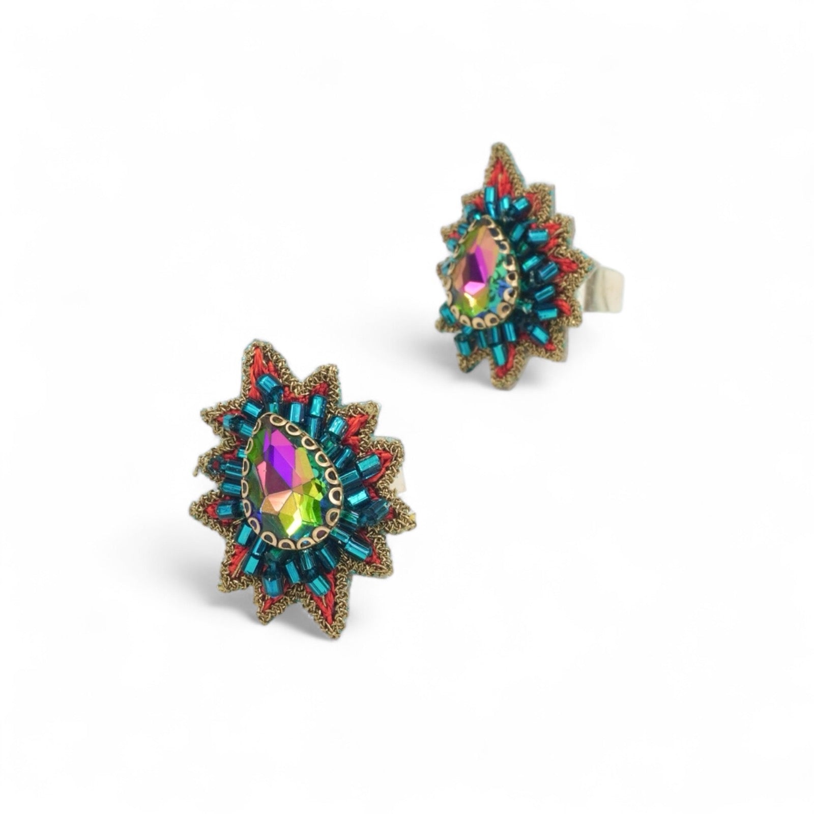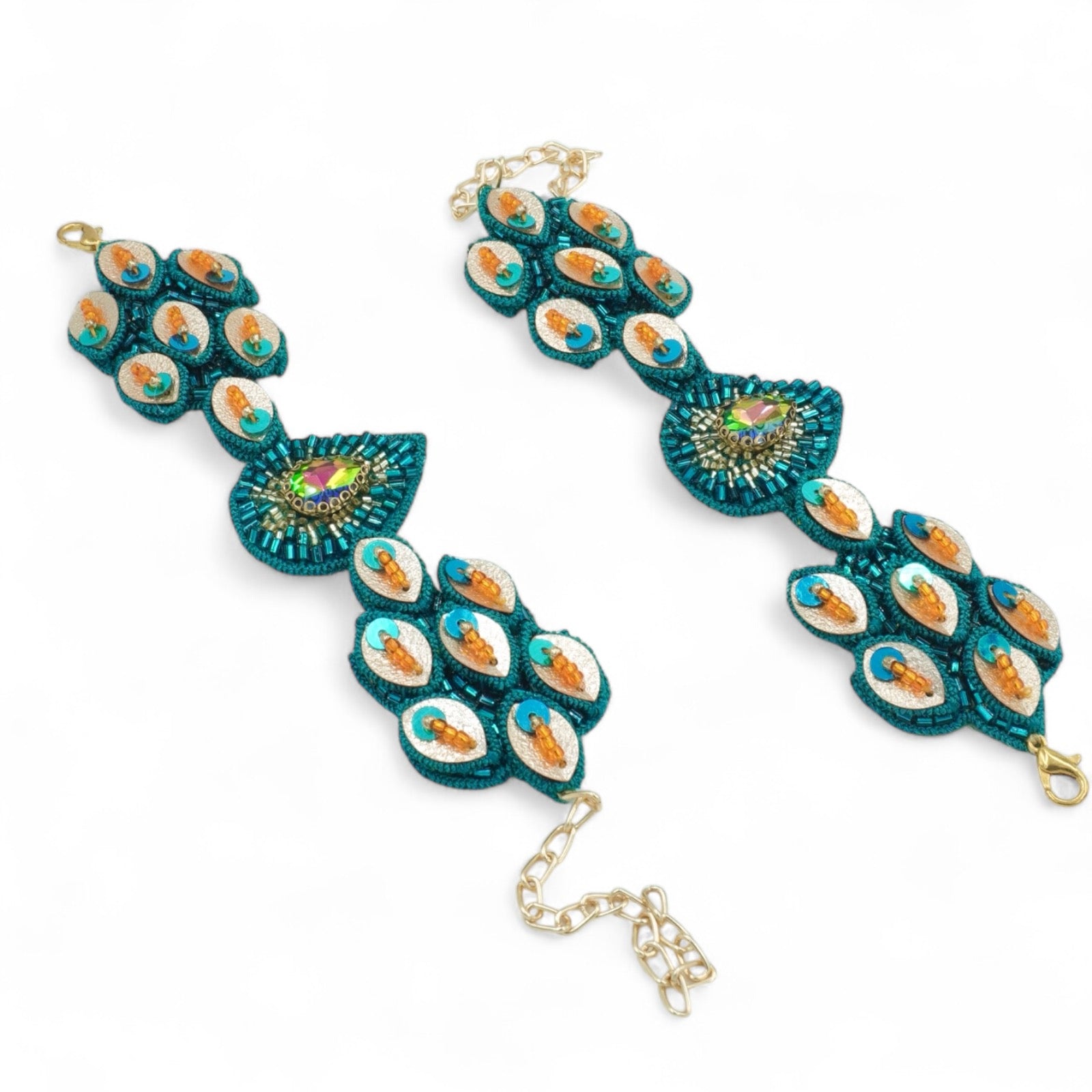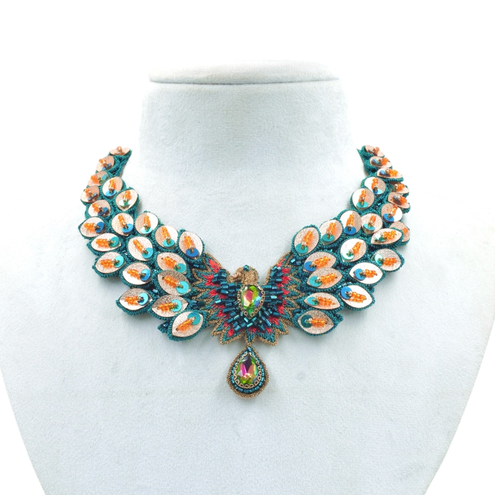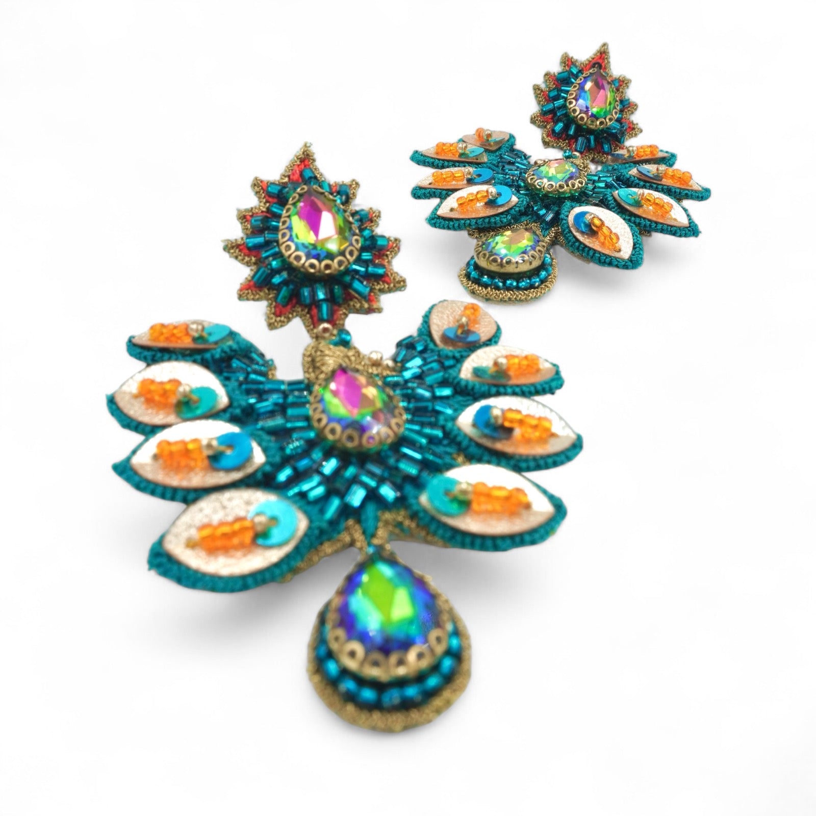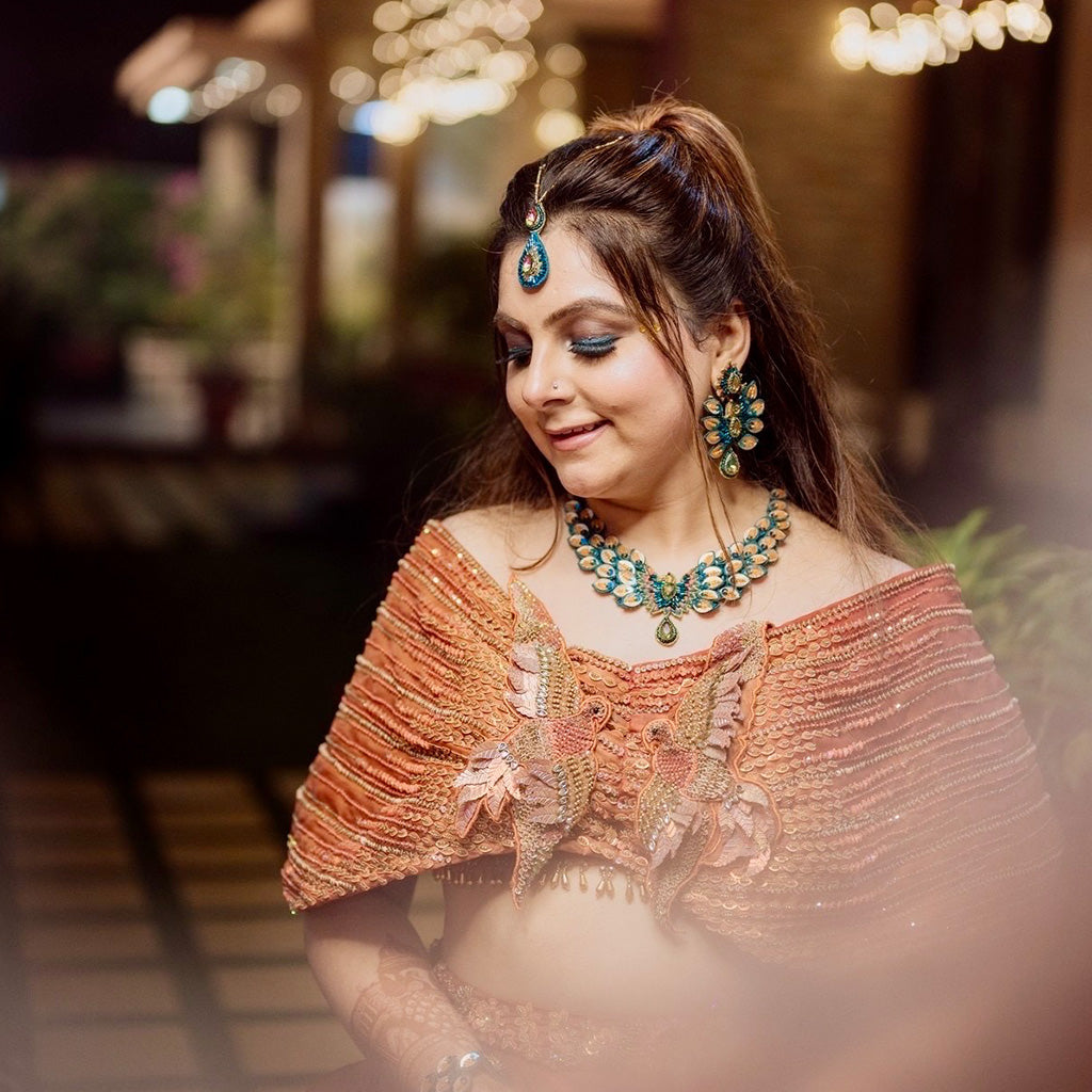 "Soar to new heights with our Frida set. Inspired by the majestic flying peacock, these handcrafted pieces capture the essence of freedom and grace. Experience the ethereal beauty of artistry and individuality with this unique set."
