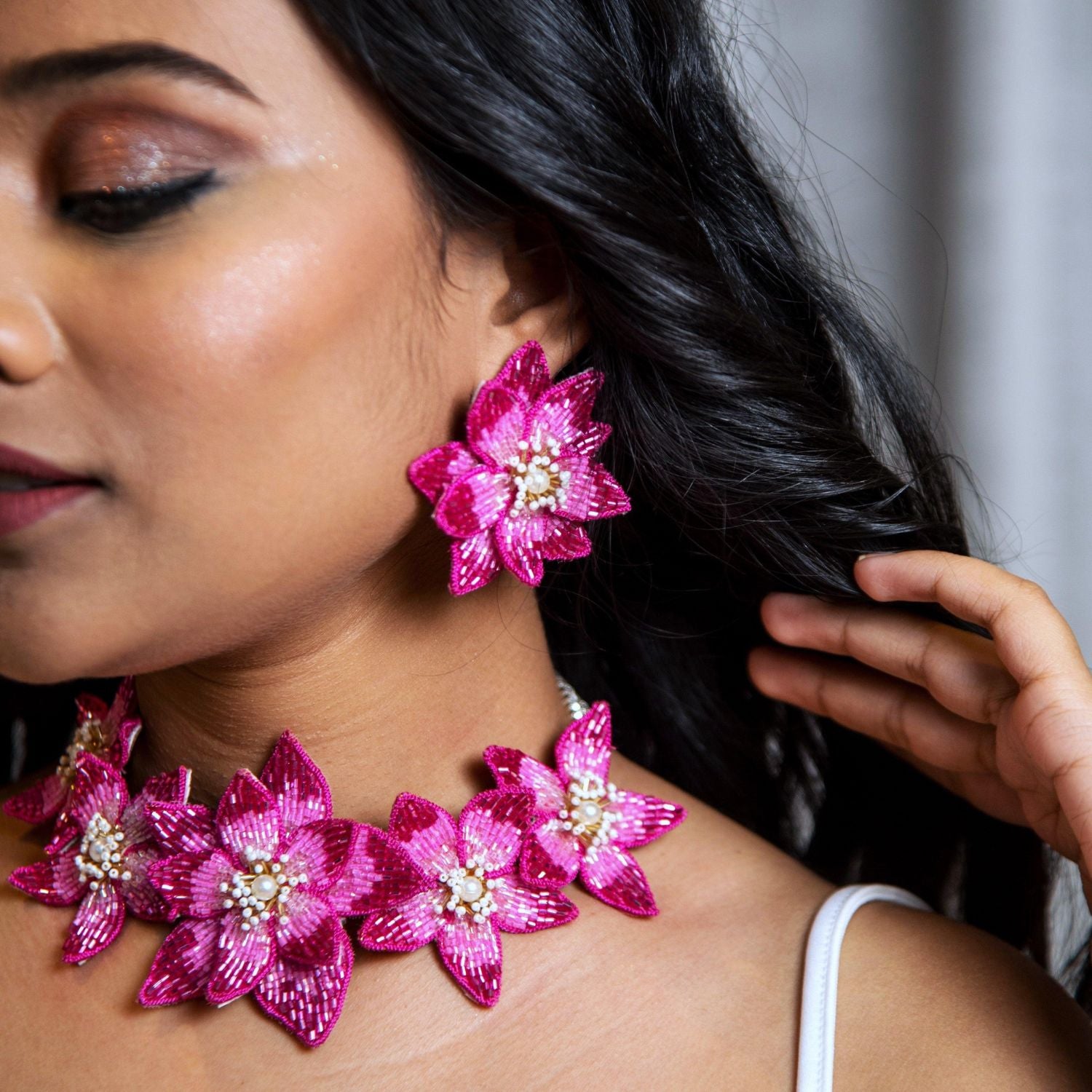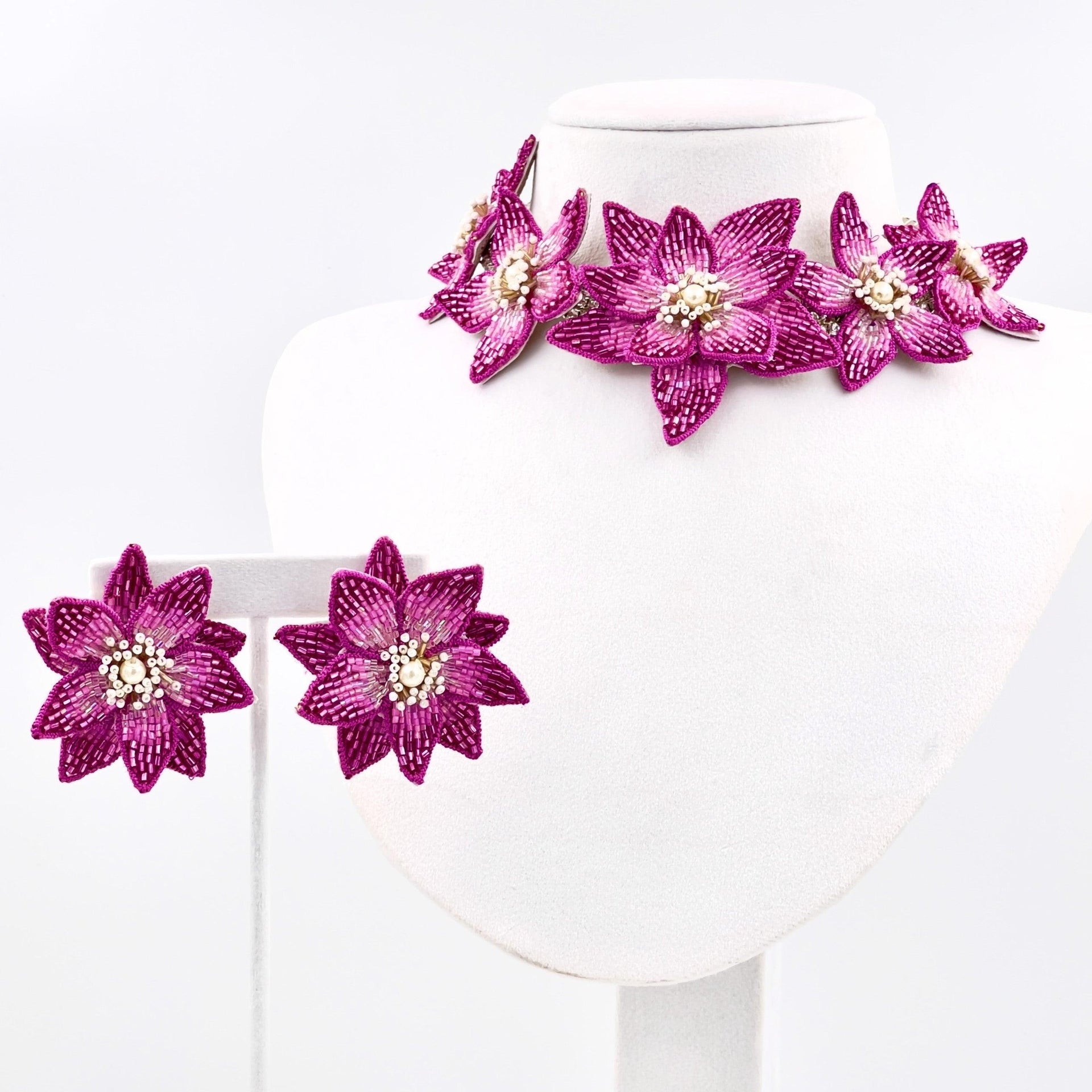 Eternal Bloom Set - Pink, Necklace and Earrings