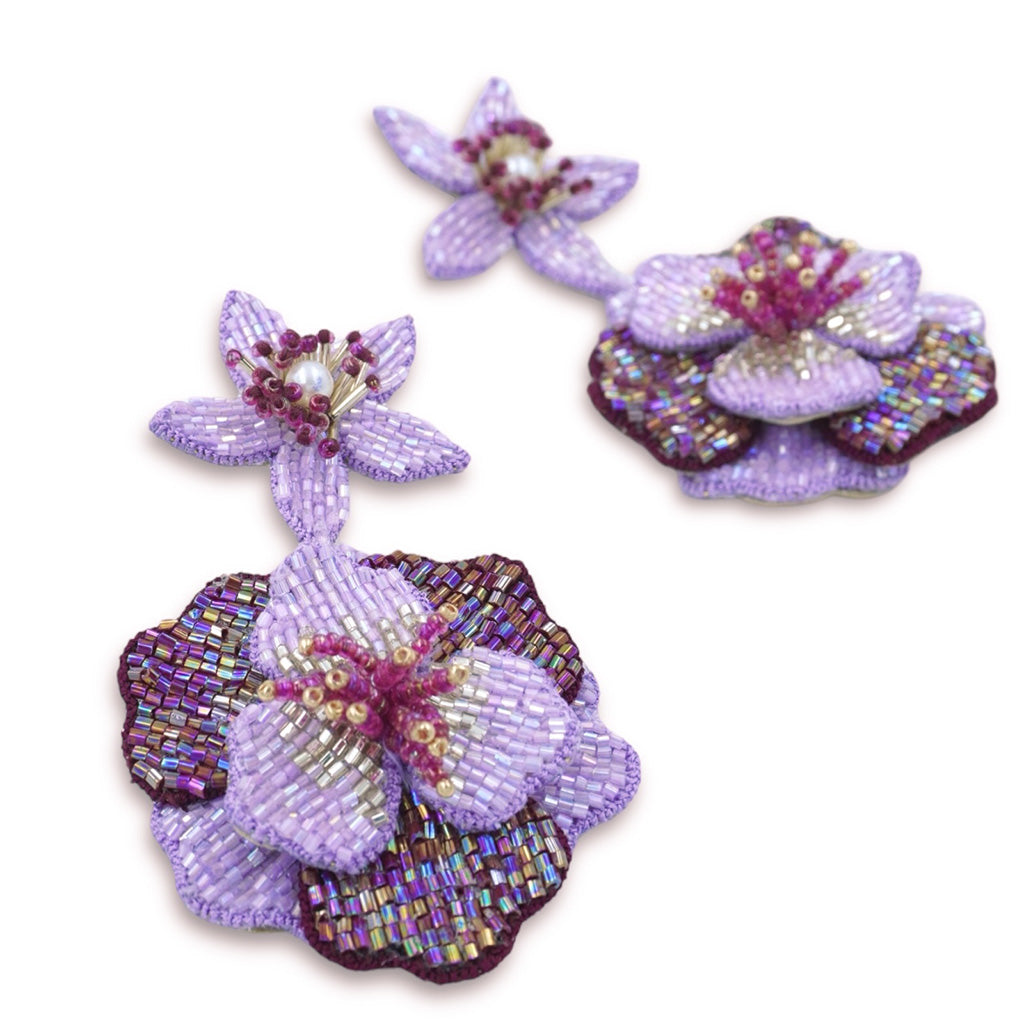 Composition - Silk thread, Tulle, Faux Pearls, Glass Beads, Vegan Leather, Mild Steel post
