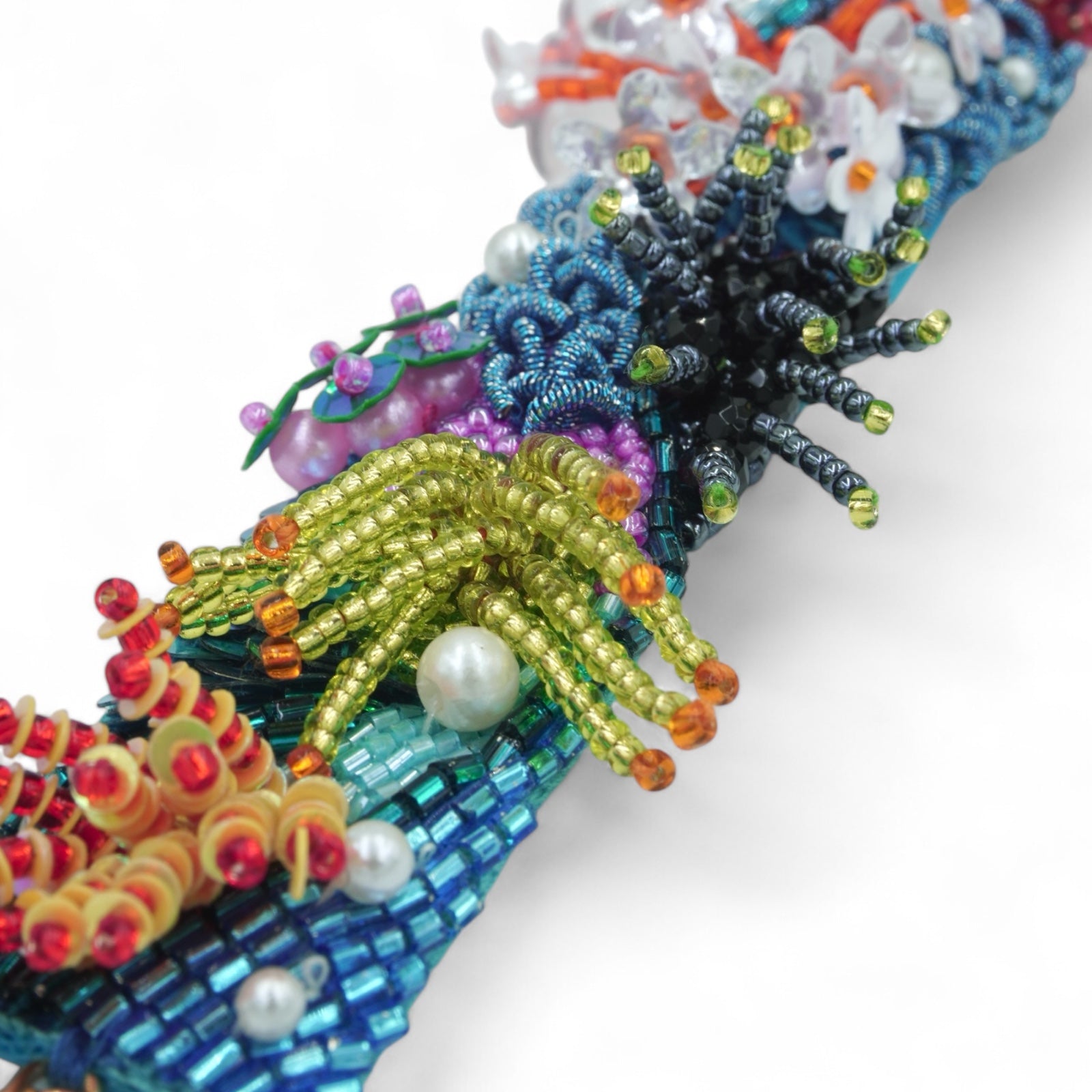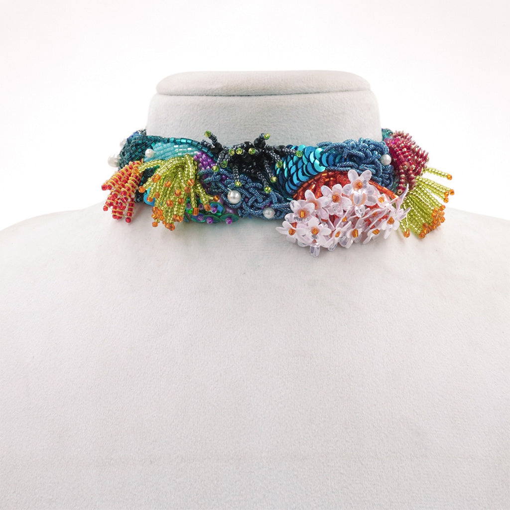 "Immerse yourself in the magic of the Andaman Islands. This exquisite collection, featuring intricate coral embroidery, evokes the serenity of the ocean. A timeless treasure for the discerning wearer."