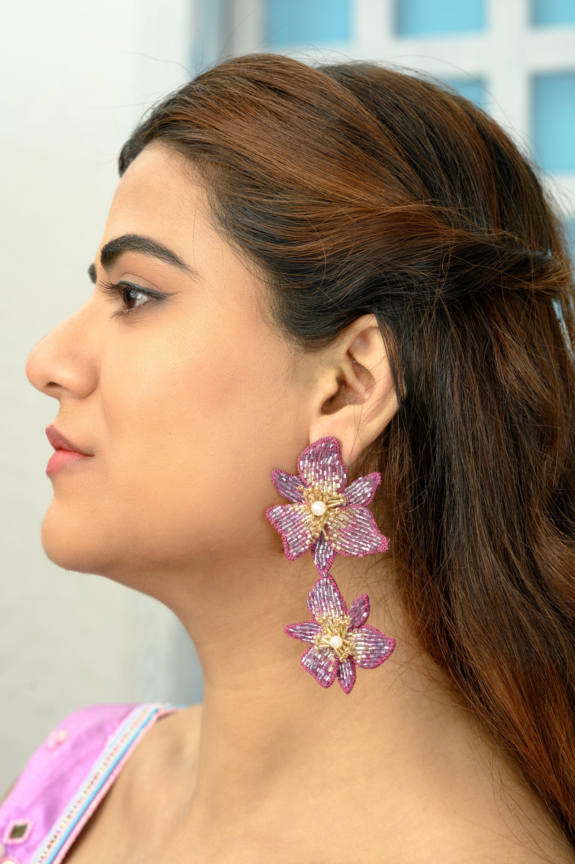 Composition - Silk thread, Tulle, Faux Pearls, Glass Beads, Vegan Leather, Mild Steel post