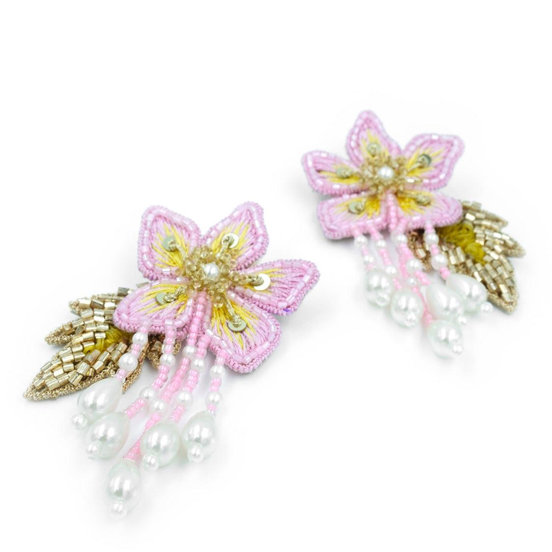 Embrace the artistry of nature with the "Sienna" set, a captivating floral design bursting with color and texture. Delicate silk threads are meticulously woven to form a beautiful flower, adorned with shimmering glass beads in a delightful array of sparkling colours.